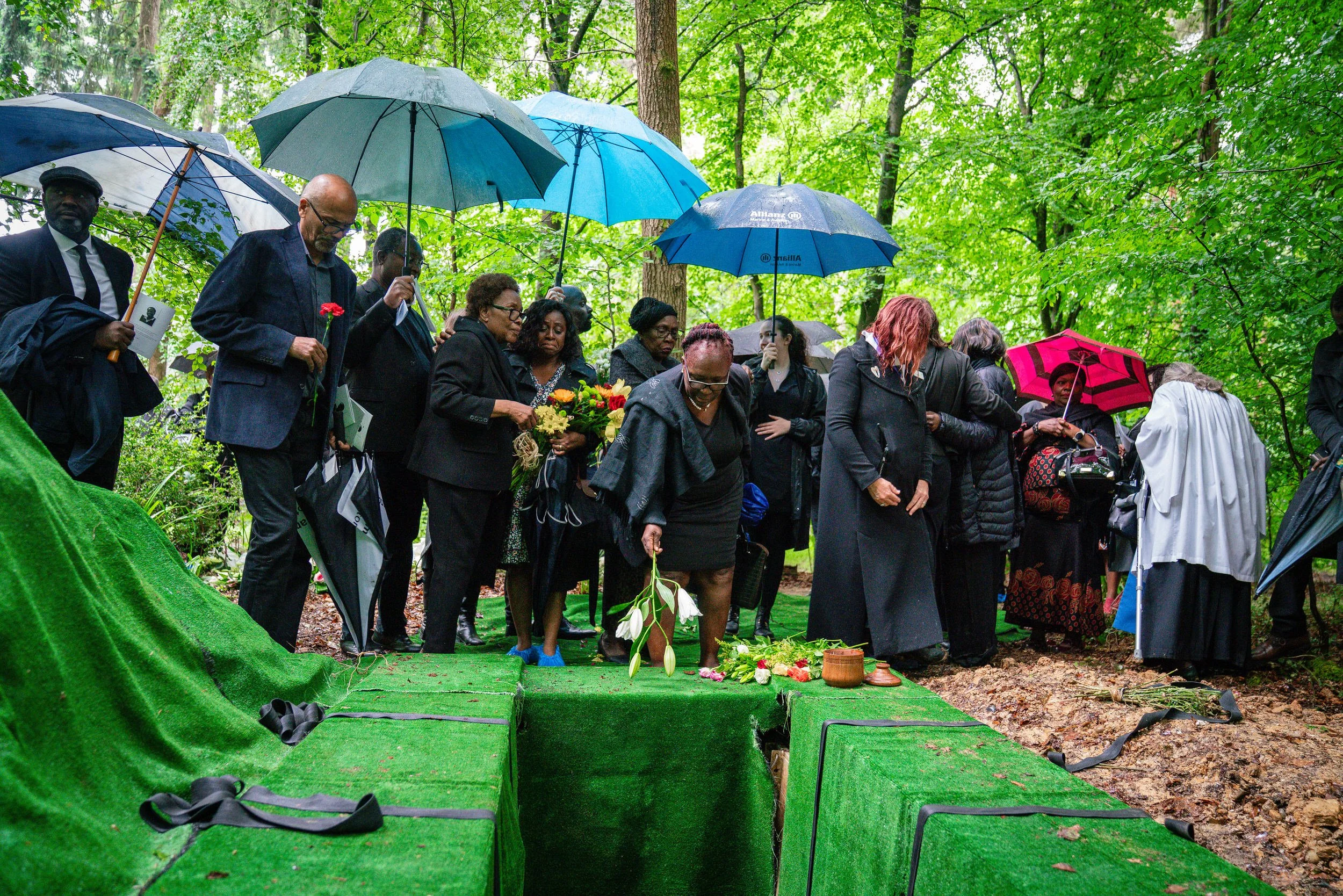 After the ceremony, we made our way into the woodland for the burial — a deeply moving procession through the rain, surrounded by trees and the sounds of nature. Photographing this day was a privilege, capturing not only the rituals and traditions of the African funeral, but also the resilience, beauty, and grace of the family as they laid their loved one to rest beneath the forest canopy.